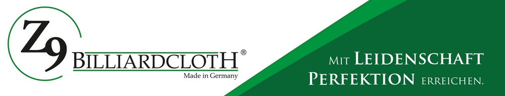 Zitat des Tuchherstellers: „Das Z9 wurde unter Verwendung spezieller Stoffe und Fertigungsmethoden in Deutschland entwickelt und hergestellt. Durch die fundierte, jahrelange Erfahrung des Entwicklungs- und Beratungsteams besticht dieses Qualitätsprodukt vor allem durch sein unschlagbares Preis-Leistungsverhältnis und meistert den Anspruch an optimaler Spielbarkeit bei gleichzeitiger Robustheit und Langlebigkeit.