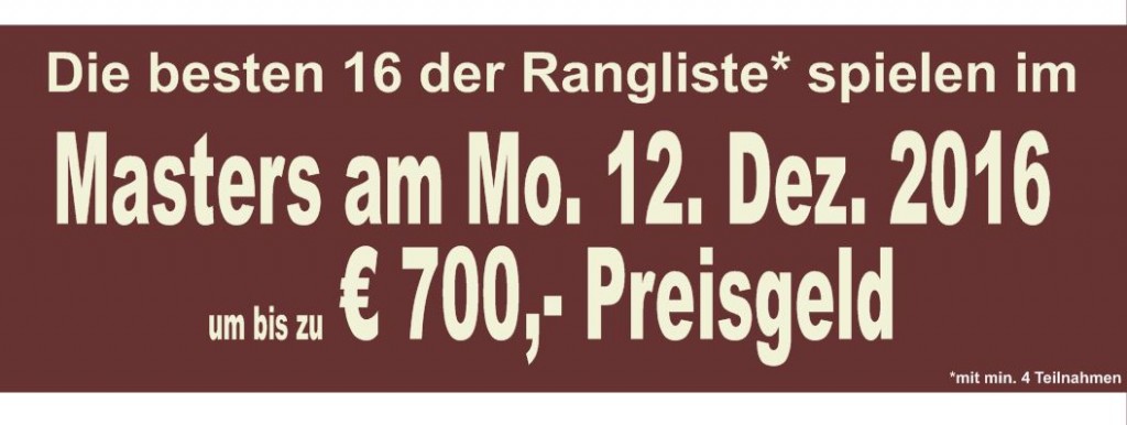 Die Startberechtigten für das Masters am 12. Dez. 2016
